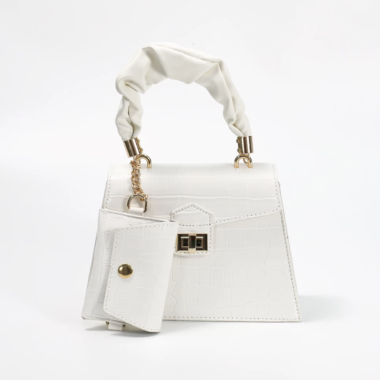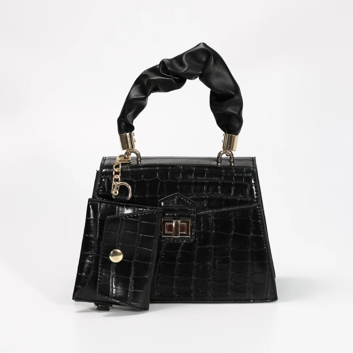 Try not to fall in love with this bag.  The Bossy Bag will elevate your look and bring out the boss babe in you. Featuring faux leather details, gold accents, a bonus wallet, and removable straps.